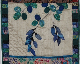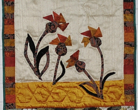 quilt op canvas, 20 x 20 cm, met borduurwerk van 15 x 15 cm.