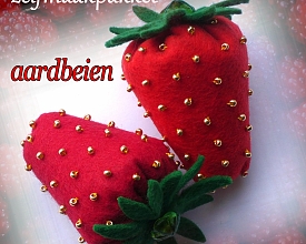 pakket voor 2 aardbeien van vilt, ong. 6 cm., met materiaal en werkbeschrijving.