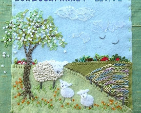 Lente, borduren op een ondergrond van vilt. het borduurwerk daarna vastgenaaid op een ondergrond van ruwe zijde. 20 x 20 cm.